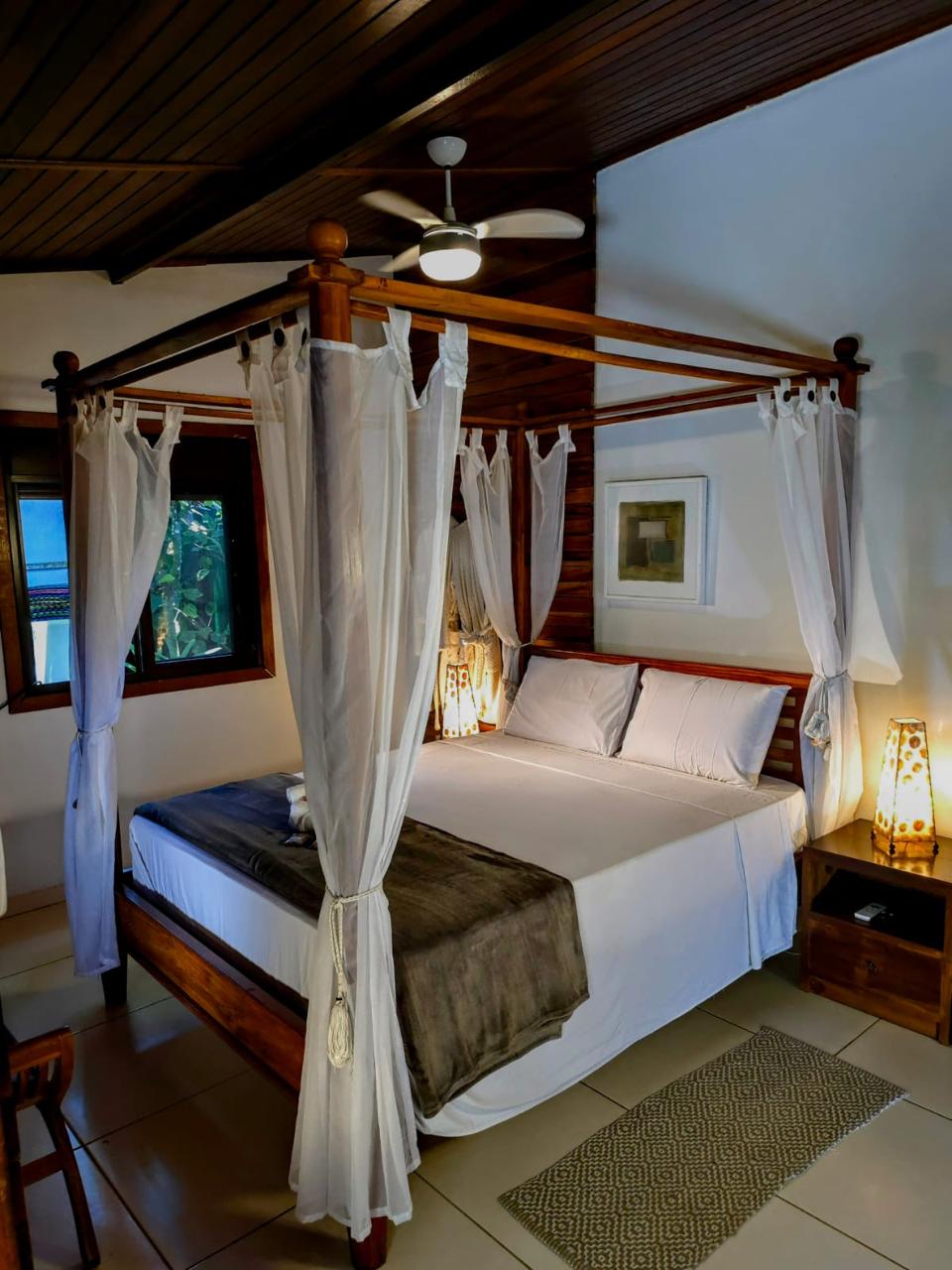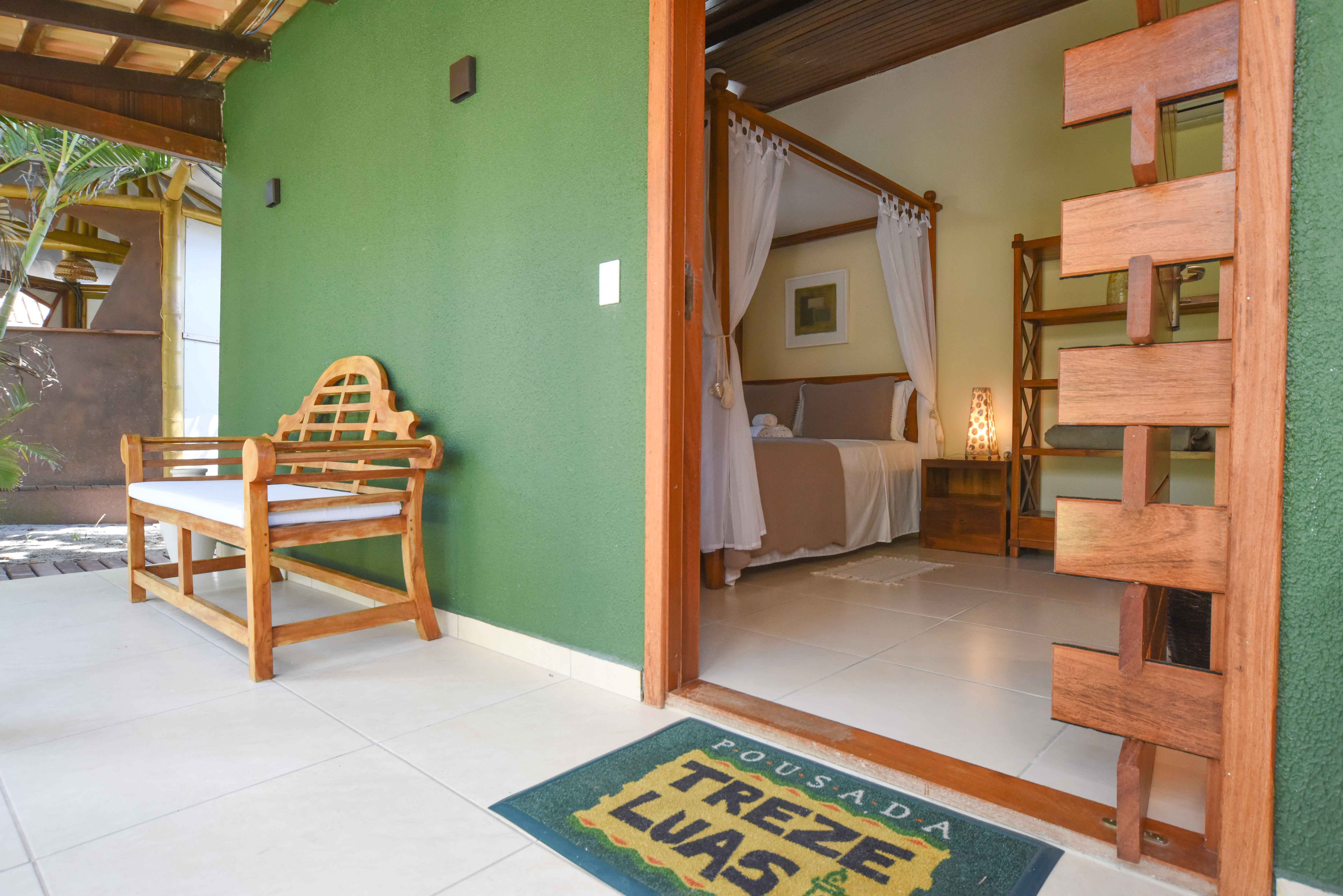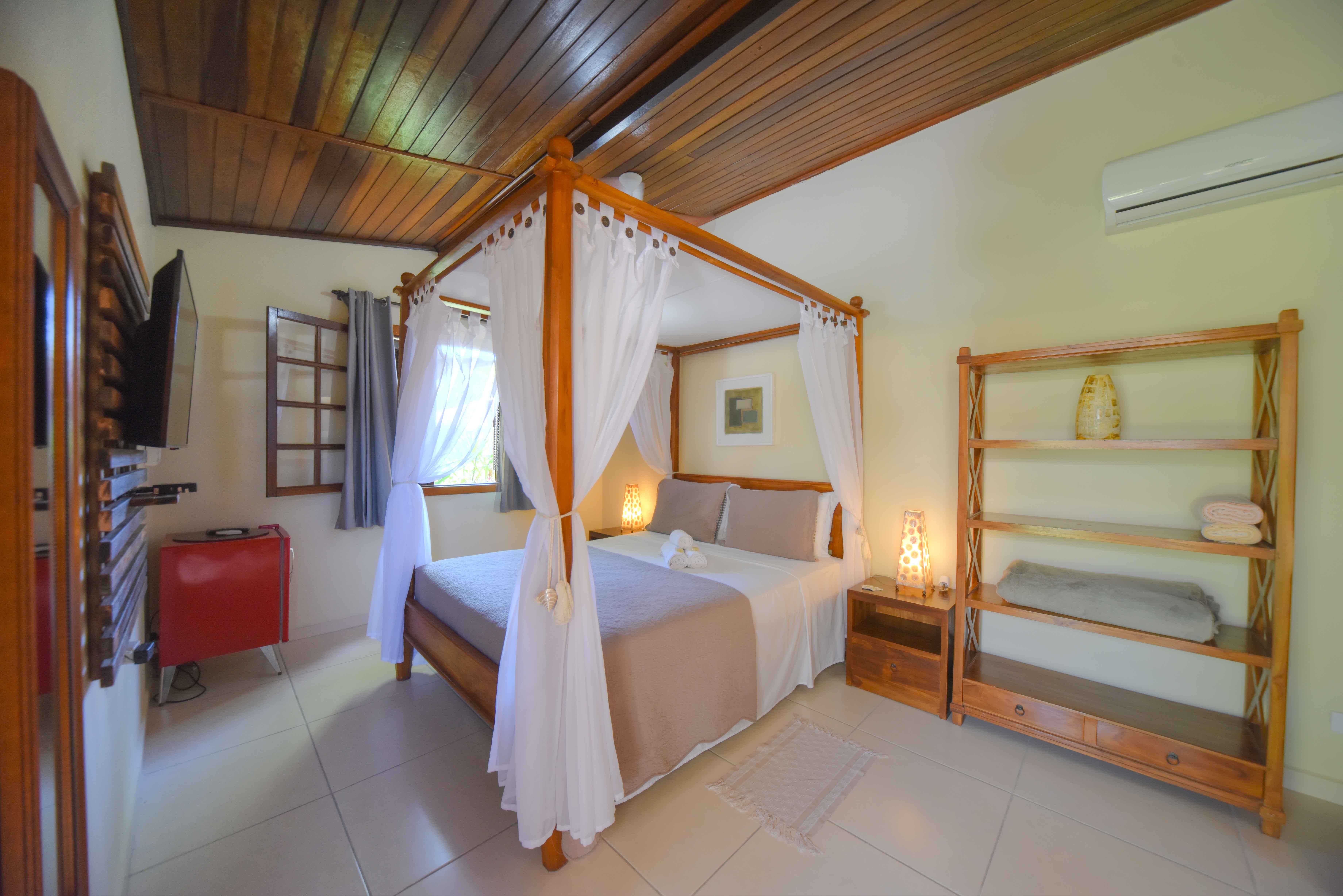 Localizada em uma estrutura reservada com varanda e pergolado privativos, conta com jardim exclusivo com fonte e banheira de hidromassagem. Possui cama king com dossel, minibar, e tv32 Smart. Ambiente climatizado com ar-condicionado e ventilador de teto. O banheiro possui ducha de água quente com aquecimento solar, toalhas, shampoo, condicionador, sabonete e espuma de banho.